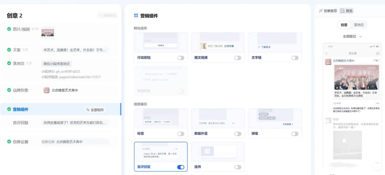 广告设计完成后提供预览二维码,确认无误后提交平台审核,1-2 个工作日即可上线。投放期间实时监测数据,根据曝光、转化情况灵活调整人群标签与投放策略,不断优化效果,让收益最大化。