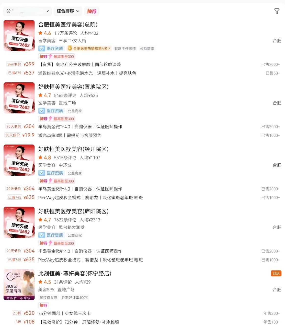 在整形外科竞争激烈、风险较高的背景下,恒美将重心转向轻医美和皮肤管理,避开了与大型整形医院的正面交锋,也迎合了后疫情时代消费者对自然美的追求。