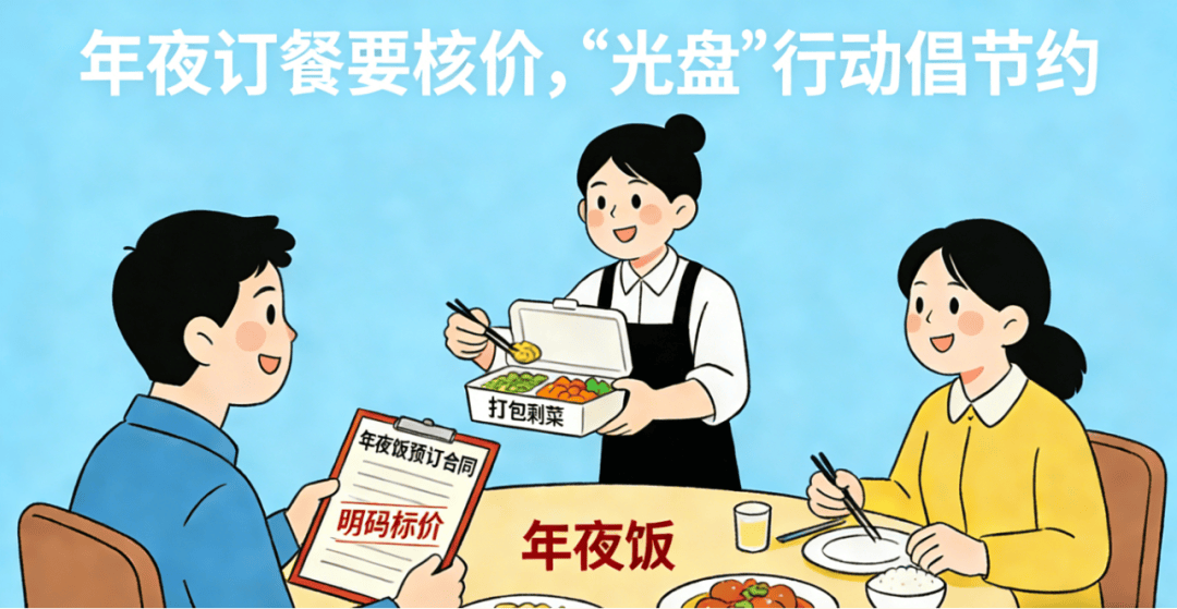 春节年夜饭是阖家团聚的重要时刻。消费者预订年夜饭时,选择具有食品经营许可证和营业执照,资质齐全的、卫生环境干净整洁的餐饮服务单位。尽量签订书面合同或保留详细订单,明确约定菜品名称、分量、价格、服务收费项目、变更及取消规则等,避免事后争议。就餐时提倡“光盘行动”,适量点餐,剩菜打包。结账时请仔细核对账单,留意是否收取未事先告知的费用。